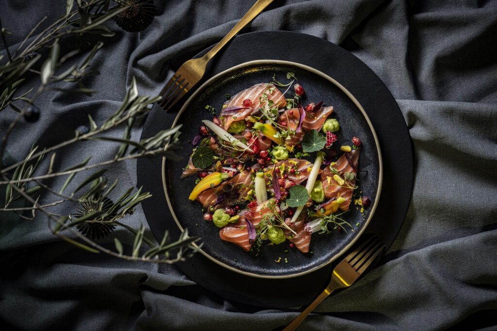 Crudo de saumon aux agrumes - frais et léger, avec la douceur du miel et des notes de sauce soja.