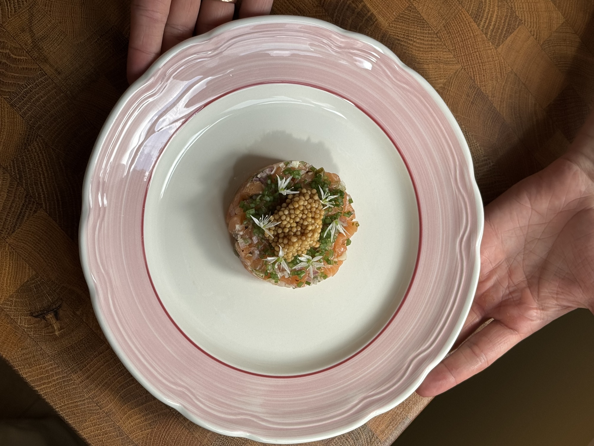 Accueil Recettes Tartare de saumon Tartare de saumon 30 minutes Facile Amuse-gueule Instructions Éviter que l'écran ne se mette en veille Procédure : Mélanger le saumon, les échalotes, les câpres, l'huile et une bonne pincée de sel dans un bol. Répartir le mélange dans deux assiettes. N'hésitez pas à utiliser un petit moule à dessert pour donner au tartare une belle forme ronde. Garnir chaque tartare de ciboulette ou de fleurs d'ail sauvage et de graines de moutarde marinées. Ajoutez une tranche de citron et du pain grillé en accompagnement. Produits dans cette recette Demi Frøya Back Loin 180g